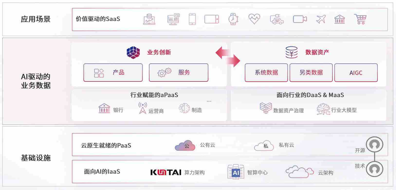 数字时代,,围绕企业数字化转型的关键要素,,TOPAY钱包数码开创性的提出数云融合战略和技术体系框架,,,,着力在云原生、、数字原生、、AI原生和信创产业上架构产品和服务能力,,,为处在不同数字化转型阶段的快消零售、、、汽车、、、、金融、、、医疗、、、政企、、、教育、、运营商等行业客户提供泛在的敏捷IT能力和融合的数据驱动能力,,构建跨界融合创新的数字业务场景和新业务模式,,,助力企业级客户建立面向未来的核心能力和竞争优势,,,,全面推动社会的数字化、、智能化转型升级。。。。